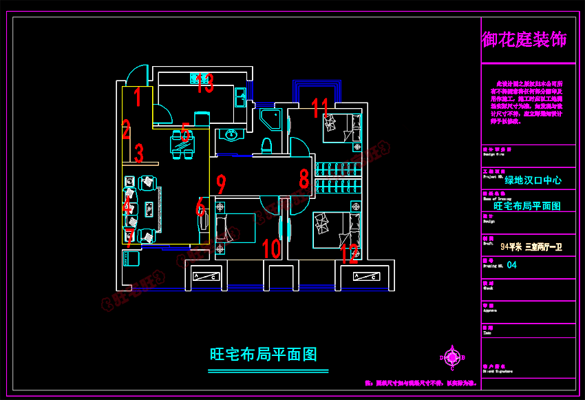 绿地汉口中心100平方米户型风水布局及装修VR-3D图: