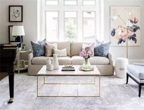 原理:客厅次要的沙发应放置在面对大门的中央,坐在面对大门的沙发上,能察觉到门外的动态。另外,正对大门也有正面迎财的意味意义。
